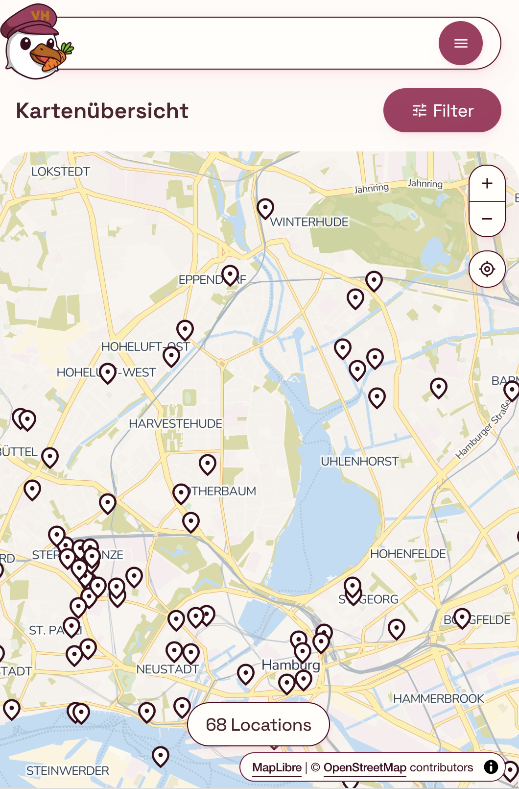 Die einzelnen Listen sind filterbar für aktuell geöffnete Orte, sowie strikt vegane, wo auf etwaige Milch oder Ei-Allergie geachtet wird.